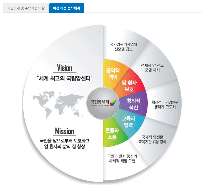 비전: 암 없는 건강한 사회, 국민이 신뢰하는 암센터
