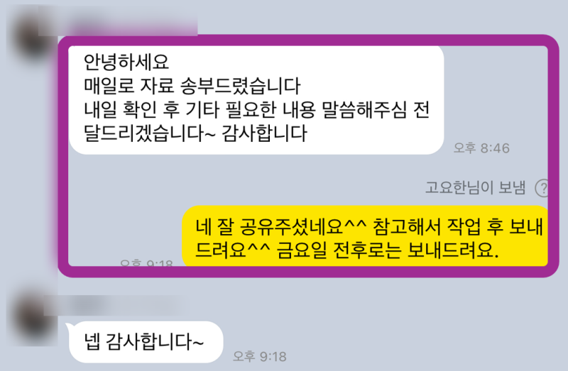 - >> 결제 확인 후 작업 시작 및 1:1 심층 소통