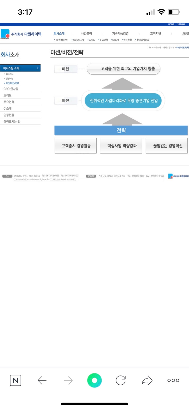 핵심 가치: 혁신, 기술, 고객 만족, 지속 성장