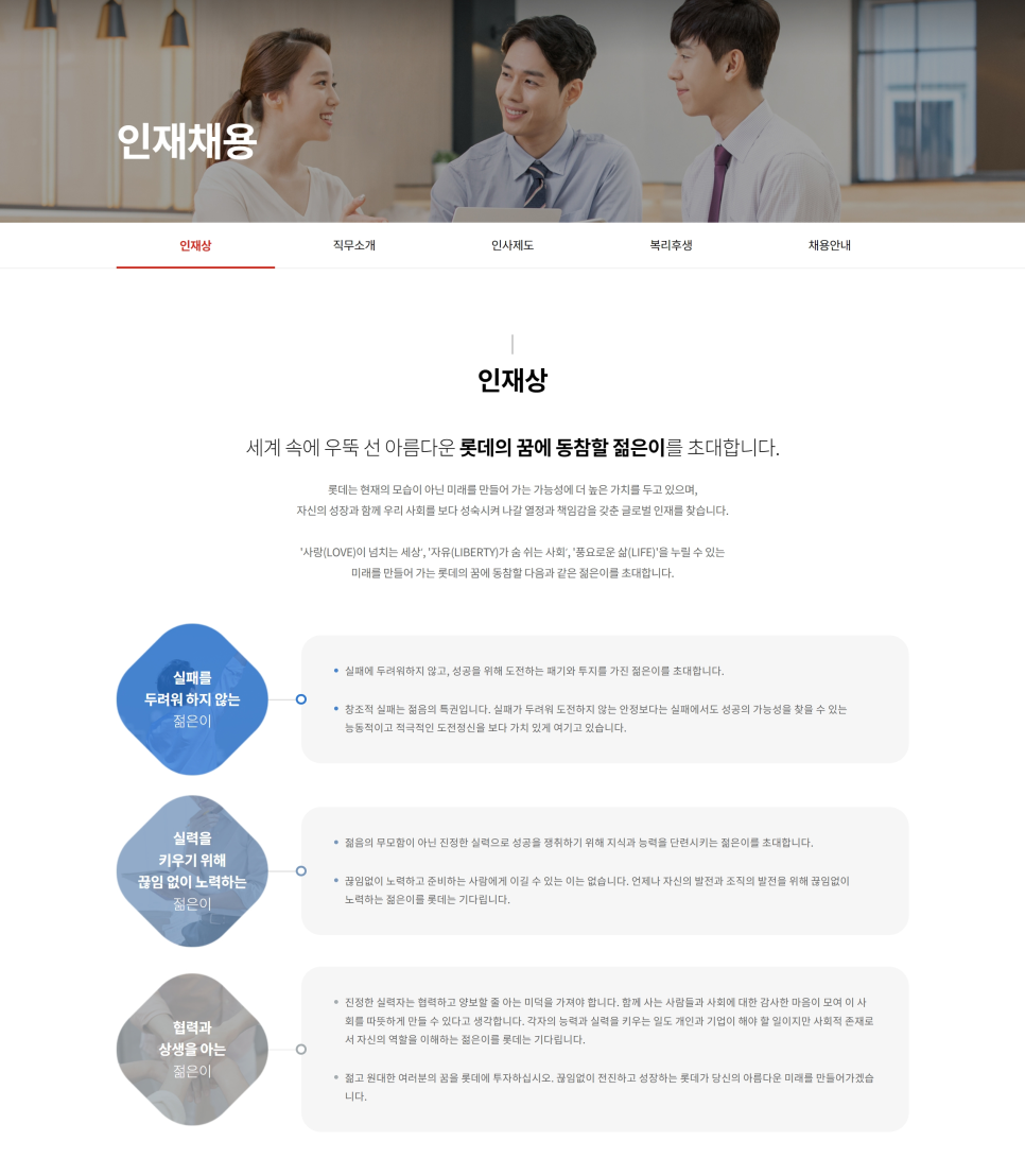 - 상생을 추구하는 사람: 동료, 고객, 사회와 협력하여 함께 성장하는 인재