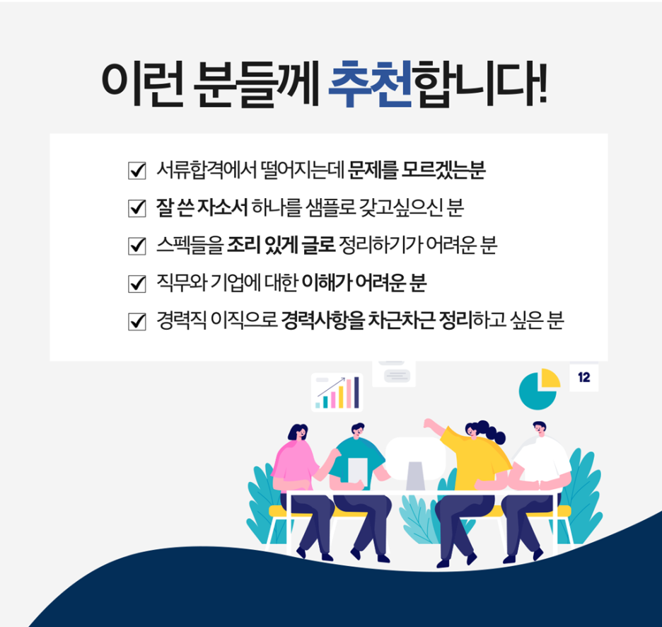 - >> [2단계] 자료 공유: 지원하시는 회사, 직무, 이력서, 기존 자소서 등 필요한 자료를 공유해주시면 제가 꼼꼼히 검토합니다.