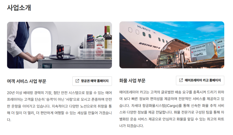 • ✔️ 주요 사업: 국제선 여객 및 화물 운송, 장거리 노선 위주의 합리적인 프리미엄 서비스 제공
