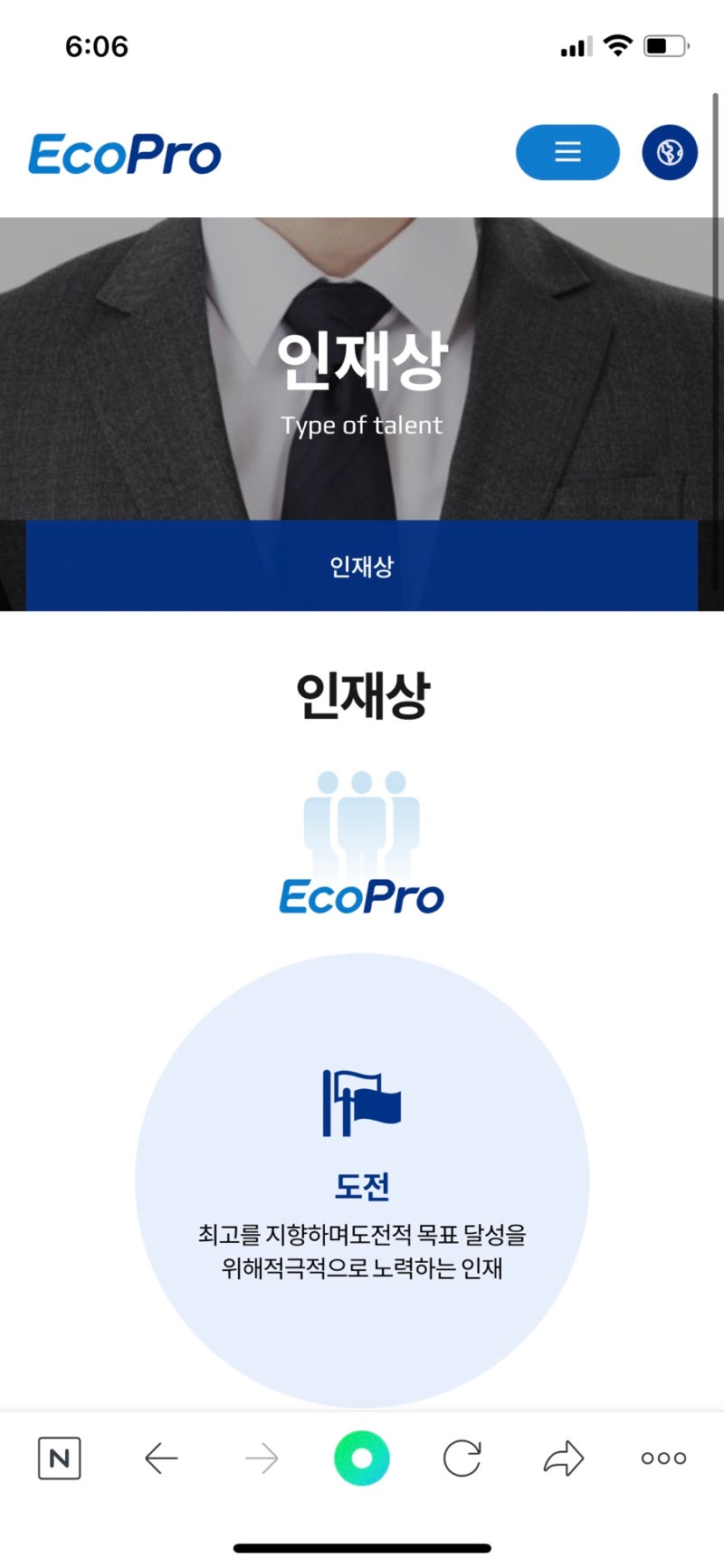 – 도전하는 인재: 변화를 두려워하지 않고 새로운 것에 도전하며 혁신을 추구하는 인재