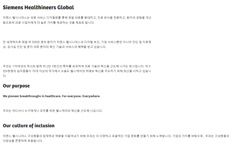 – 핵심 가치: 예: 환자 중심, 혁신, 책임감, 다양성 존중, 윤리 경영