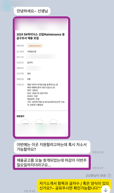 SK하이닉스 합격 자소서, 이렇게 쓰면 됩니다! 전문가의 1:1 첨삭 후기