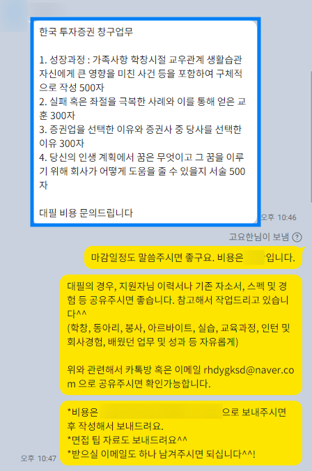 한국투자증권 채용공고 자소서 문항 분석! 서류 합격부터 면접까지 자기소개서 첨삭 후기!