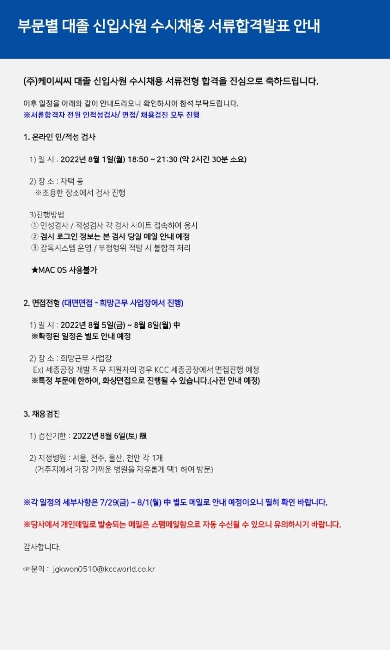 이번에 합격 후기를 전해드릴 지원자분은 KCC 생산기술 공무 직무에 지원하신 분이었어요. 👷♂️